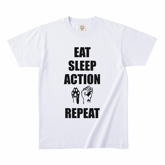 【商品説明】 EAT SLEEP ACTION REPEAT Tシャツ黒 https://youtu.be/wBoRkg5-Ieg?si=nWU-jJkyggp0DJxL 売り上げの一部は、動物擁護活動のためのチャリティーとなります。 【Tシャツについて】 [生地] 肌にも地球にもやさしいオーガニックコットン100% [色] どんな服にでも合わせやすいナチュラル [プリント] オンデマンド転写(DTF)。発色が良く洗濯耐久性に優れています。 [サイズ] S / M / L / XLをご用意しています。 Tシャツのサイズ(単位:cm) サイズ 身丈 身幅 肩幅 袖丈 S 65 48 43 18 M 68 52 46 19 L 71 56 49 20 XL 74 60 52 21 XXL 77 64 55 22 [ロゴサイズ] EAT SLEEP ACTION REPEATのロゴサイズは、ヨコ17.2cm×33.9cmです。 【発送方法とお届け日数について】 受注生産のため、商品のお届けまでに2週間程度のお時間を頂いております。 *この商品画像はイメージです。実物とは異なる場合がありますのでご注意ください。